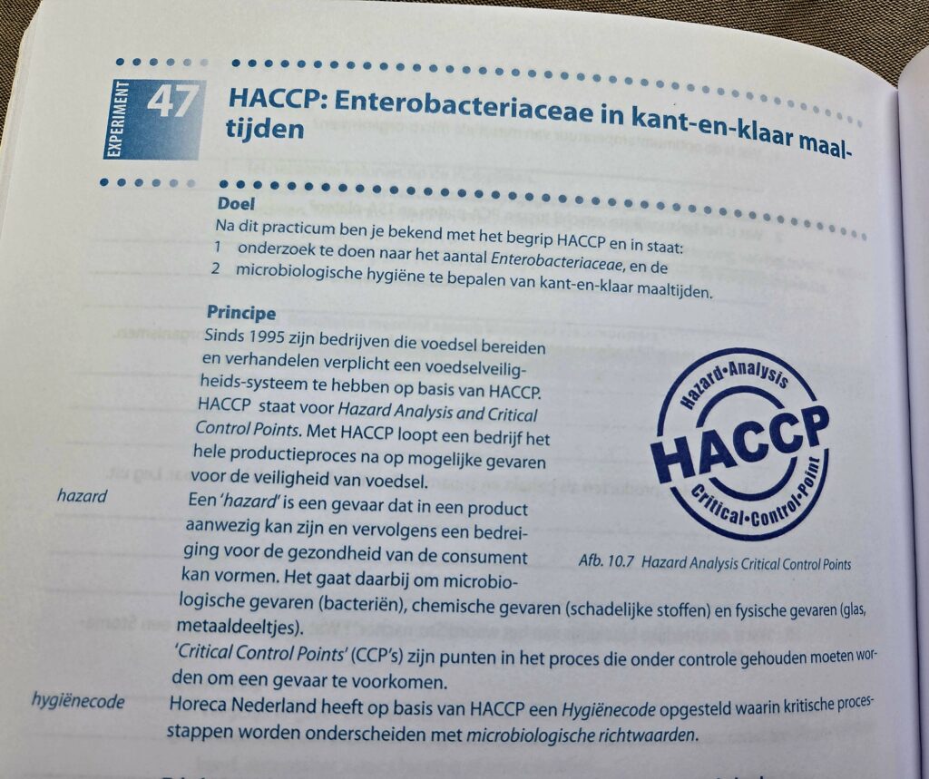 In de leermethode Basisvaardigheden Microbiologie is een experiment opgenomen waarmee het aantal Enterobacteriaceae wordt bepaald in kant-en-klaar maaltijden (exp. 47).